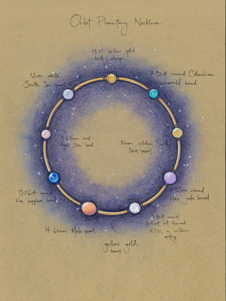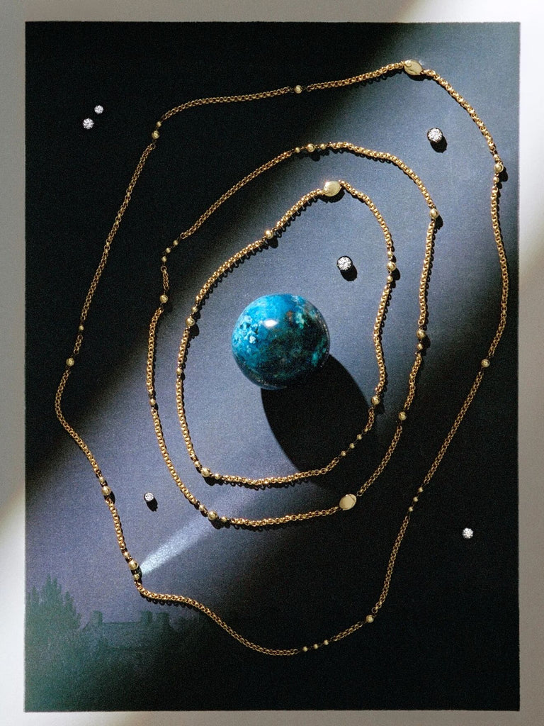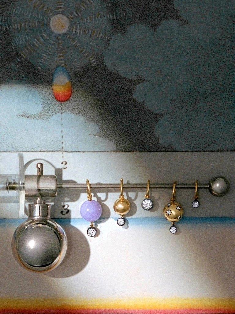 Incorporating the Victorian jewelry-making techniques synonymous with our designs, Orbit pays tribute to the 19th century’s golden age of astronomy. The era’s fascination with stargazing was motivated by significant celestial events, including the discovery of Neptune in 1846, which brought cosmic motifs to the forefront of jewelry design, fashion, and home décor of the time. Orbit plays with spherical shapes and astronomical themes to juxtapose antique traditions and Jessica’s irreverent approach to luxury.