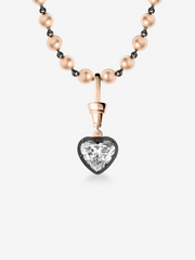 A Ball n Chain Diamond Pendant with a 2.50ct heart-shaped diamond, set in a Georgian style cut-down setting in 18K blackened white gold and rose gold.